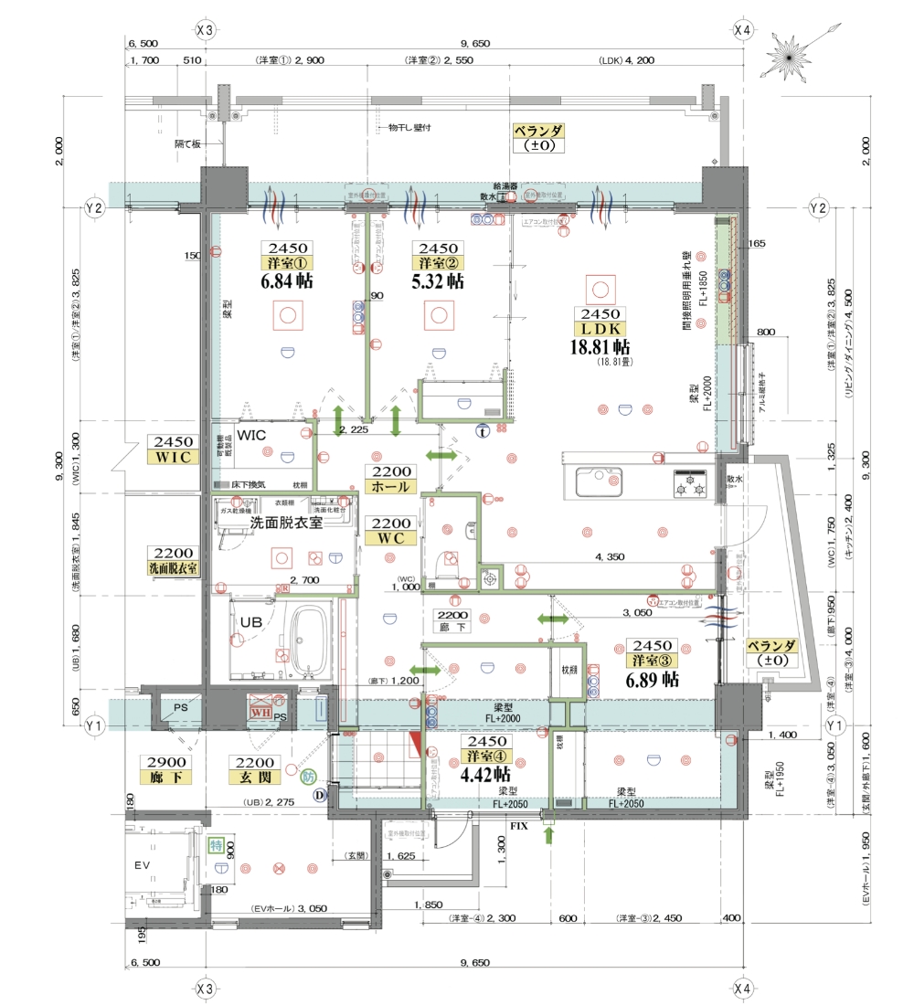 4LDK生活空間面積 120.299㎡ / 36.390㎡ 専有床面積 98.146㎡ / 29.689坪 ベランダ面積 22.153㎡ / 6.701坪 ※生活空間面積は、専有床面積とバルコニー面積を加えた面積を表します。